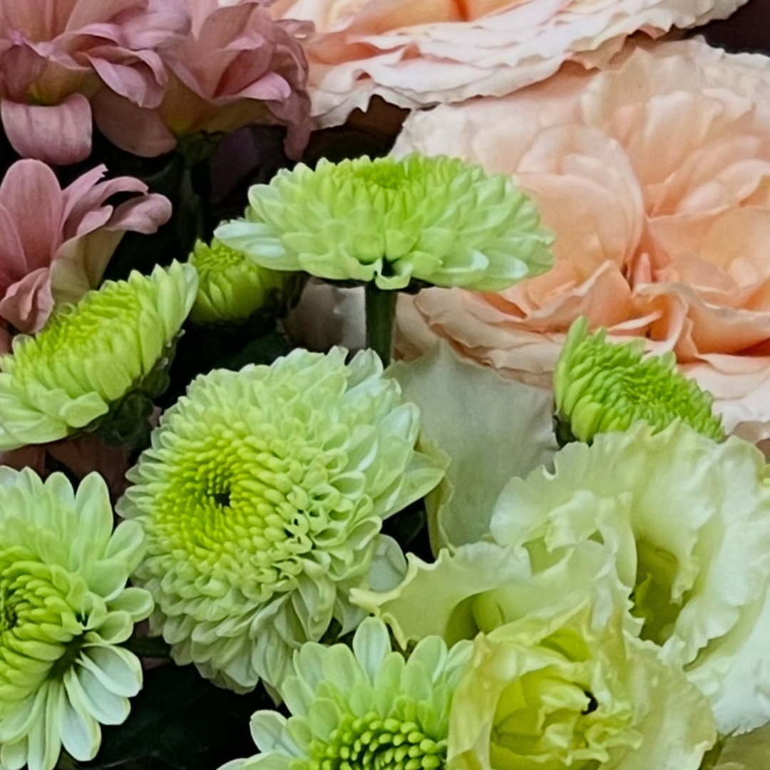Seasonal blooms thoughtfully arranged into a rustic wicker basket.